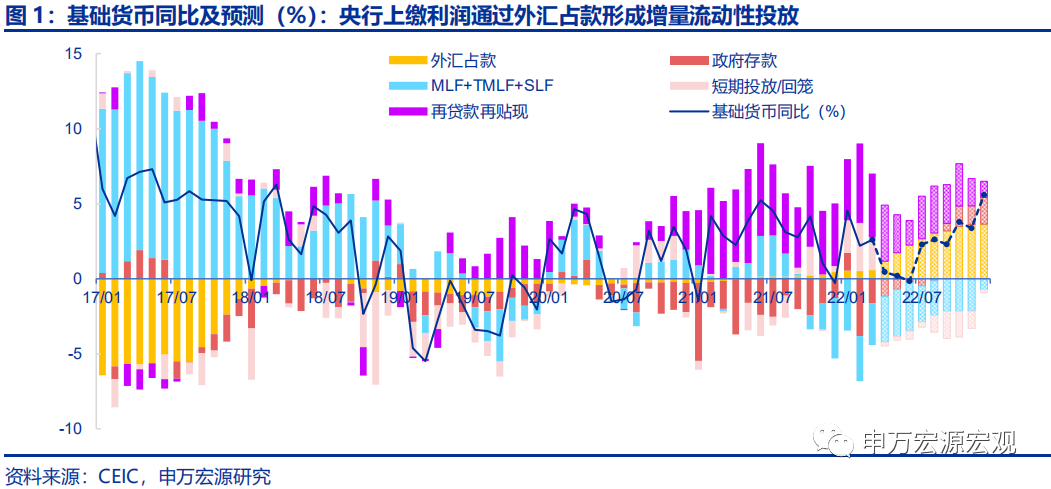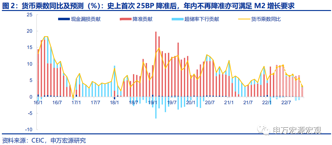 降准幅度首次收窄至25BP,凸显当前流动性投放迫切性并不高,在央行外汇储备经营利润上缴财政有望推升二季度基础货币增速的背景下,此次降准相当于“置换月末逆回购”。国常会重提“适时降准”之后,市场对近日降准已经形成强烈预期,但25BP的极窄降幅却是出乎市场预料的,为什么拿出这样一个稍显谨慎的幅度?从流动性供给“量”的角度来看,两大财政货币政策操作配合的因素,令二季度流动性投放本身就比较充裕:其一,今年财政支出较去年明显更加积极,去年多存的政府存款也成为今年重要的财政融资手段,政府存款的多减对基础货币高增提供了重要支持,3月政府存款单月减少达12657亿,同比大幅多减7000亿,仅这一项就对M2同比增速形成了1.2个百分点的增量贡献,加之1-3月MLF增量净投放4000亿,3月在M2同比上行0.5%至9.7%的基础上,测算的超储率仍达到1.6%,显示银行间流动性已经相当充裕。其二,二季度即将迎来万亿增值税留抵退税的年内峰值,其所采用的央行外汇储备经营利润上缴的融资模式也将带来当季约6000亿的增量基础货币大规模投放,从而二季度流动性本就相当充裕,保证9.0%-9.5%左右的M2增速难度并不大。从这个意义上来看,这次25BP合计5300亿的流动性释放,其实相当于对月末逆回购的置换,预计8月之前月末逆回购余额都可以保持在500亿左右的地量,仍进行操作的原因更多是为了有连续的逆回购报价。