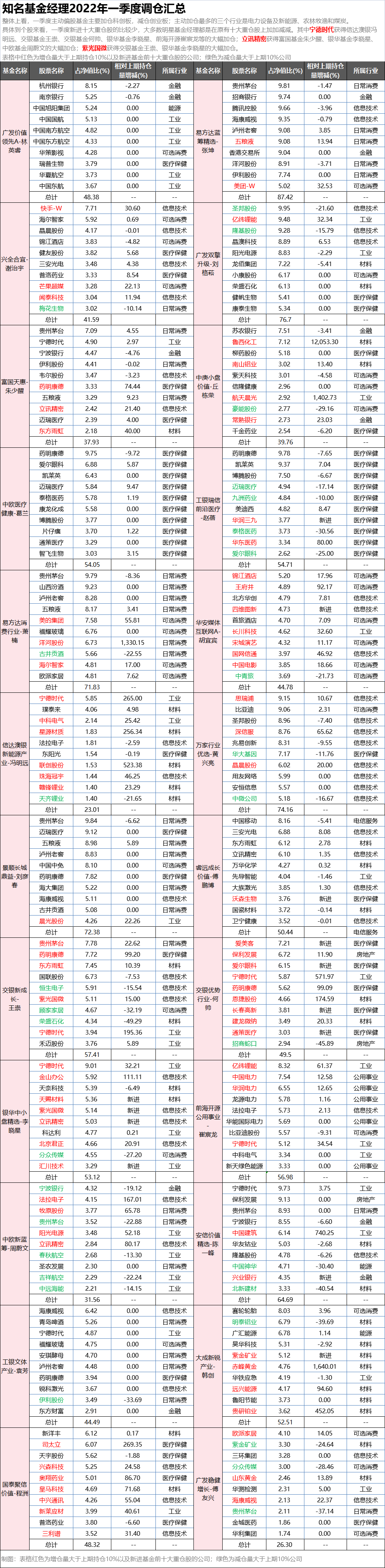 一图了解知名基金经理2022年一季度调仓汇总 尹洪昌 2022/04/25 16:27 风险提示及免责条款 市场有风险,投资需谨慎。本文不构成个人投资建议,也未考虑到个别用户特殊的投资目标、财务状况或需要。用户应考虑本文中的任何意见、观点或结论是否符合其特定状况。据此投资,责任自负。