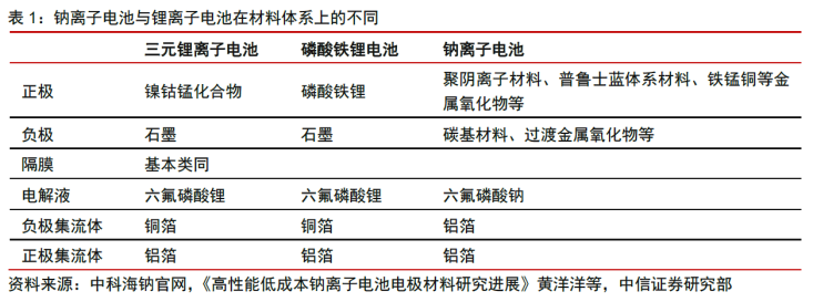 钠离子电池主要在正极、负极、电解液和负极集流体等方面与锂离子电池不同。