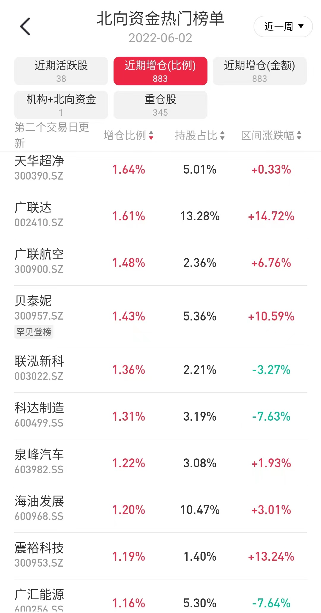 排名位居前列的泉峰汽车被增持1.22%,公司为国内领先汽车零部件生厂商,消息面上,工信部等四部门开展了新一轮新能源汽车下乡活动,此外车辆购置税减半通知落地,补贴的范围超市场预期。