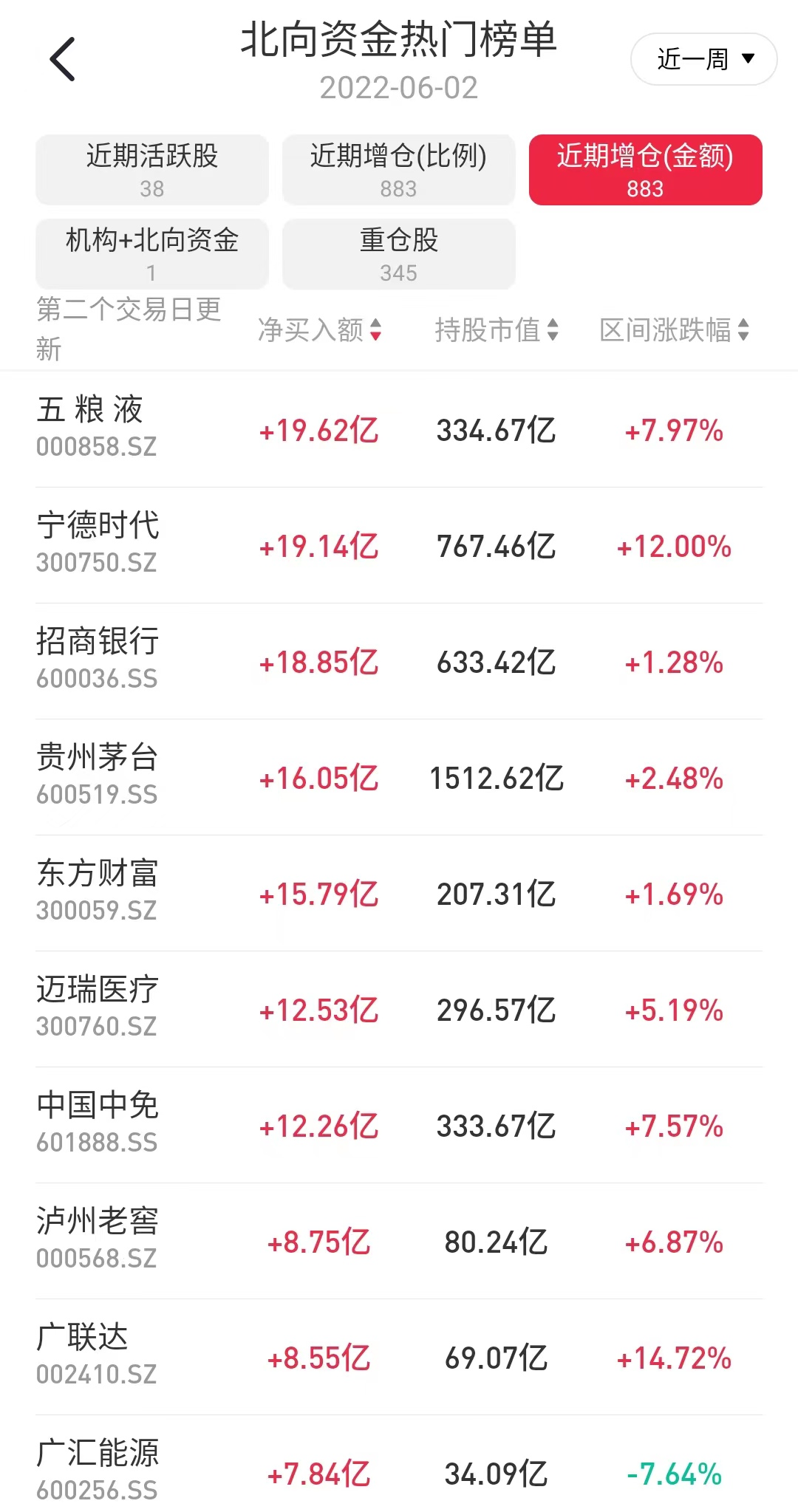 个股方面,白酒龙头五粮液以近20亿元的金额被外资加持居首,此外行业中的贵州茅台、泸州老窖的增持金额也位居前列。