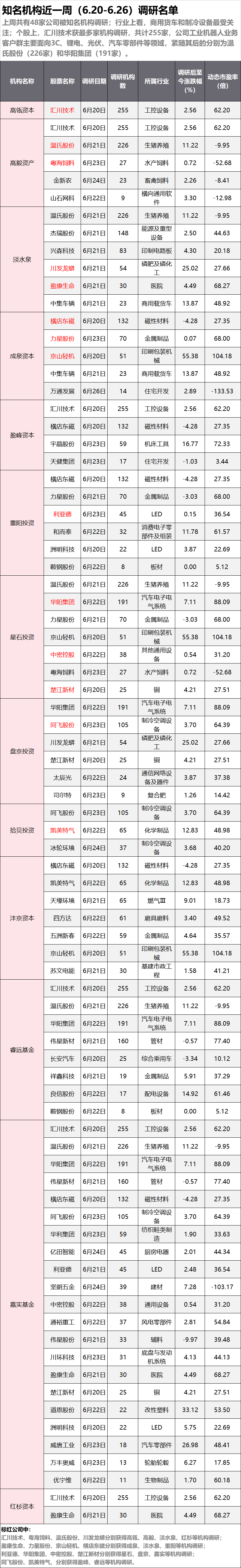 知名机构近一周(6.20-6.26)调研名单:机构扎堆这只工业机器人龙头