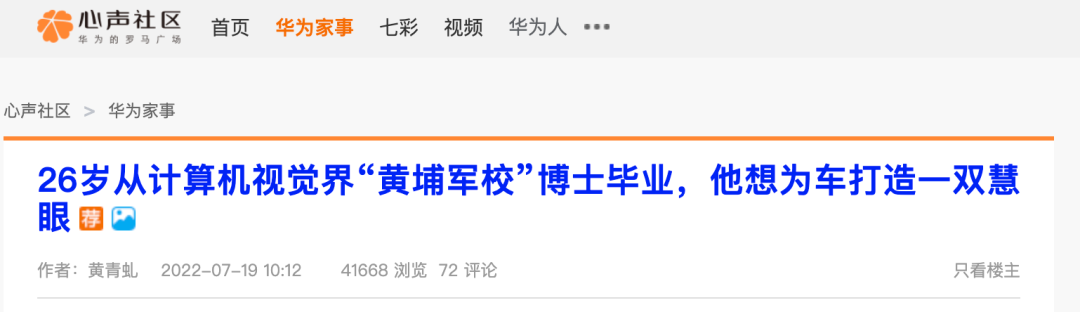 据文章介绍,黄青虬从小便是“学霸”,以692分、全省第40名的成绩考入清华大学自动化系。他作为队长,带领清华大学“火神机器人战队”,拿下RoboCup(机器人足球世界杯)的第四名。26岁从香港中文大学多媒体实验室博士毕业,发表十多篇顶级会议论文;2020年入选华为“天才少年”计划,加入智能汽车解决方案事业群不到两年,从新员工迅速成长为带领近50人团队的负责人。