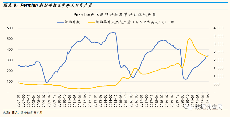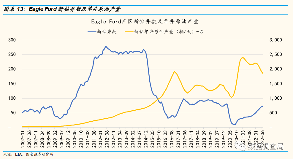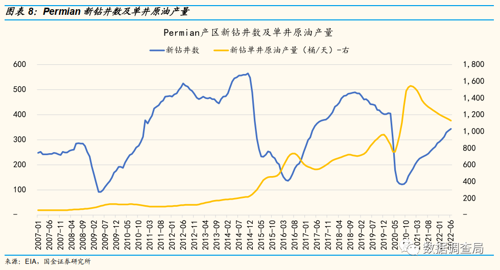 我们对重点页岩油气产区资本开支数据以及结构的梳理,我们显著的发现用于存量资产加速释放的开发类资本开支增速均显著高于勘探类资本开支,且当前页岩油气主要产区均出现新钻单井产量大幅下滑趋势,结合美国页岩油气资本开支结构及其变化趋势,侧重于加速短期存量产能释放的资本开支结构活进一步加速资源品位下滑趋势,美国中长期页岩油气供应不足风险显著增加。