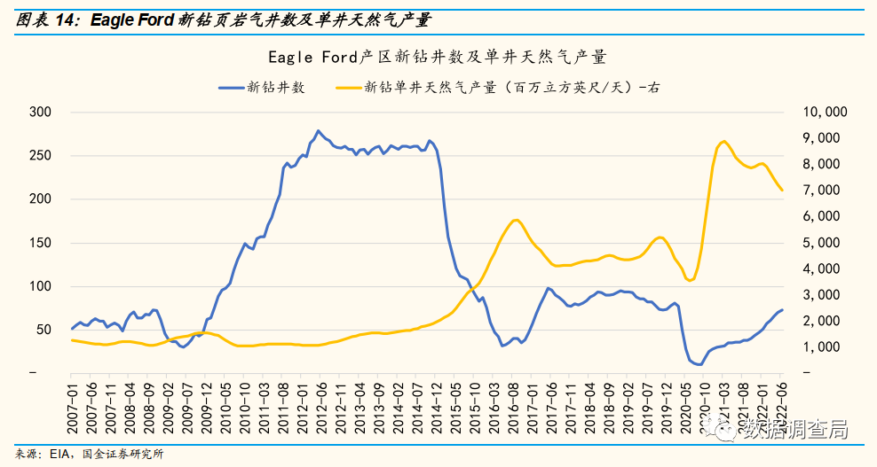 存量资产持续释放或进一步加剧资源品位下滑。当前页岩油气主要产区均出现新钻单井产量大幅下滑趋势,结合美国页岩油气资本开支结构及其变化趋势,侧重于加速短期存量产能释放的资本开支结构活进一步加速资源品位下滑趋势,美国中长期页岩油气供应不足风险显著增加。