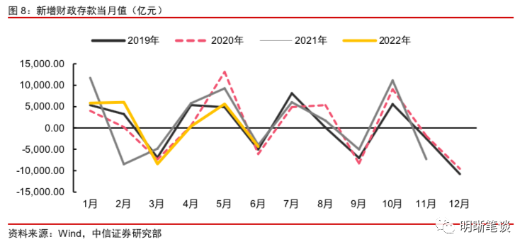 其二,财政因素对流动性的支撑预计将持续整个三季度。一方面,2022年地方政府债发行节奏前置,尤其在财政部“确保新增专项债券在6月底前基本发行完毕”的要求下,地方政府债发行集中在二季度,6月份发行量创历史新高。目前专项债发行高峰期已过,预计8月份政府债供给对于资金面的冲击不大,短期内政府债缴款压力减轻,金融机构资金压力小,融出意愿增强。另一方面,财政支出使资金从国库流回银行体系,向市场吐纳流动性,8月和9月财政往往“支大于收”,尤其是当前稳增长压力较大的情况下,支出端发力更加明显,月末大量的财政支出有望保障三季度流动性整体较为充裕。