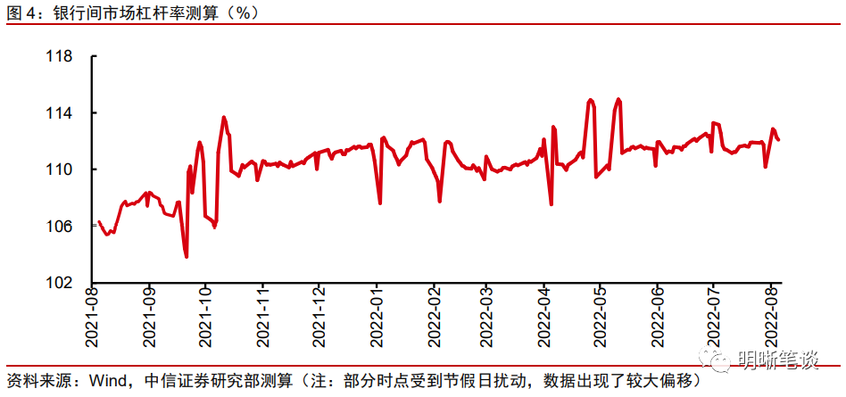 (2)债市杠杆高是金融风险。银行间质押式回购成交量攀升,反映出债市加杠杆情绪持续火热。由于流动性整体维持充裕状态,R001和DR001一直保持在极低的水平,市场对于资金面预期也更加乐观,因此开始通过回购增大杠杆。质押式回购日成交量自4月以来上行趋势明显,8月4日突破了7万亿元日成交额,隔夜回购成交量占比超过90%,市场加杠杆的情绪较为高涨。资金的体内循环伴随负债久期的缩短,使得流动性衰竭的风险上升,而当实体投资回报下降、资金用于金融投资时,杠杆风险可能更大,与政策初衷背道而驰。持续地加杠杆将导致资金市场和债券市场运行更为脆弱,一旦风险事件冲击、可能引发市场的大幅震荡。