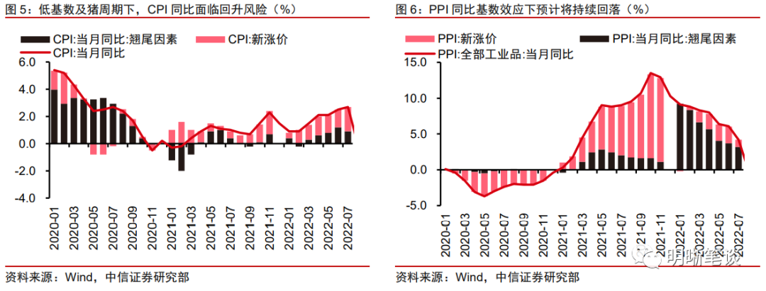 专栏4《全年物价仍可实现预期目标,但应警惕结构性通胀压力》分析下半年通胀形势。今年来,海外诸多发达经济体遭遇较高通货膨胀压力,我国通胀水准整体呈现温和上升趋势,截至7月均保持在了3%的目标水准之下。报告指出我国基本面上具备维持物价稳定的有利条件,而该条件主要来自于粮食能源保供稳价政策与稳健货币政策的配合。疫情消退后的消费需求回暖、新一轮猪周期起步以及对国际石油、天然气等能源产品依赖等结构性因素下需警惕通胀回升。央行指出我国物价总量平稳之下,结构性通胀压力仍存,其一是后疫情时代的消费需求回暖引起消费项的涨价,其二是新一轮猪周期下的猪价上行,其三则是石油和天然气等依赖海外输入的能源涨价风险。