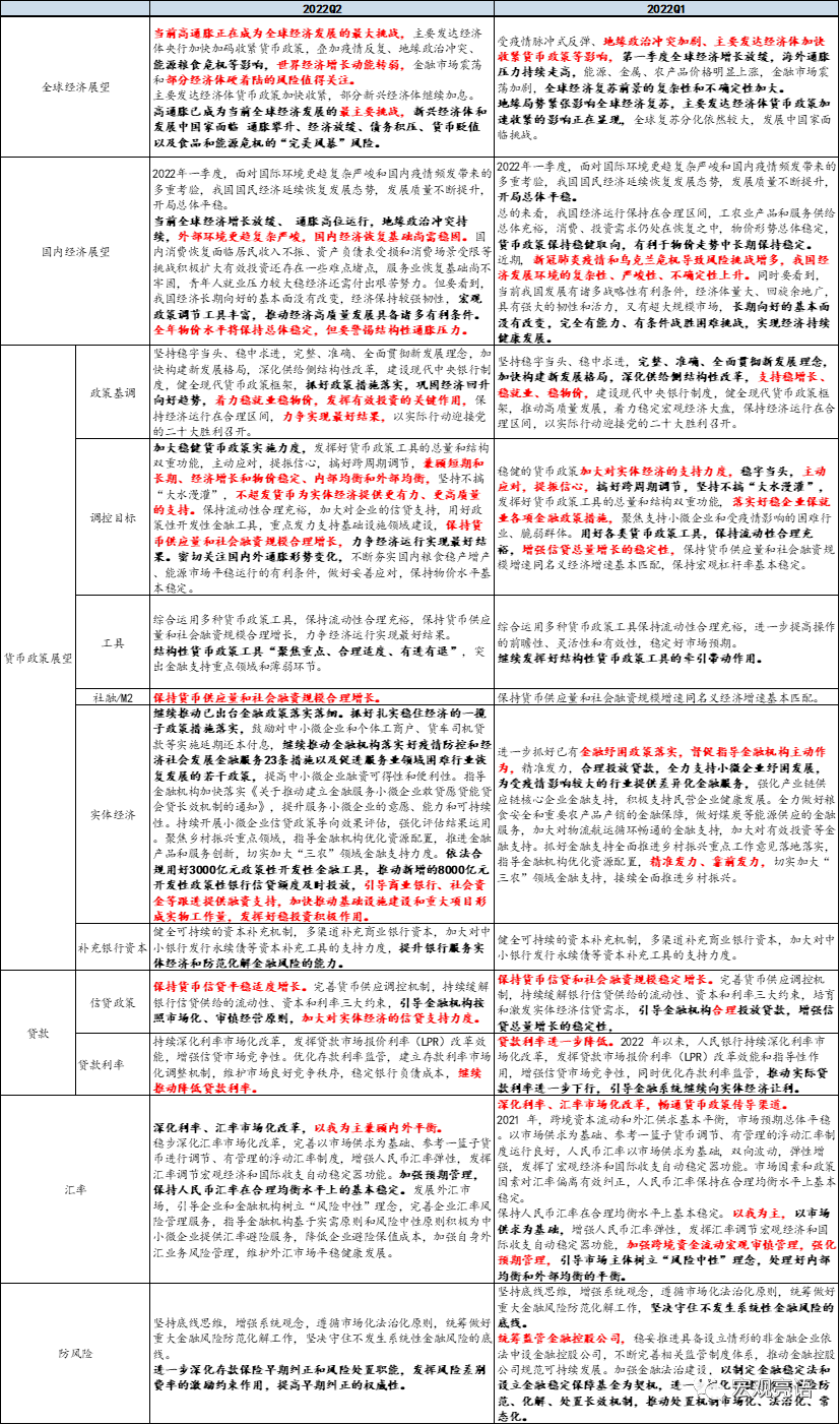 二、Q2货币政策执行报告表述变化一览
