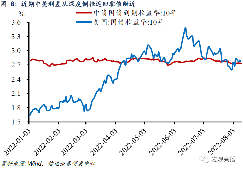 7月欧元区 HICP同比增长 8.9%再创新高,美国 CPI同比小幅回落 0.6个百分点至 8.5%,但考虑到当前美国通胀环比回落势能依然有限,去年三季度 CPI环比基数明显较低,美国通胀的进一步回落仍存阻碍。央行指出发达经济体货币政策正面临偏松加剧通胀、偏紧加大经济硬着陆风险的 “两难困境 ”。