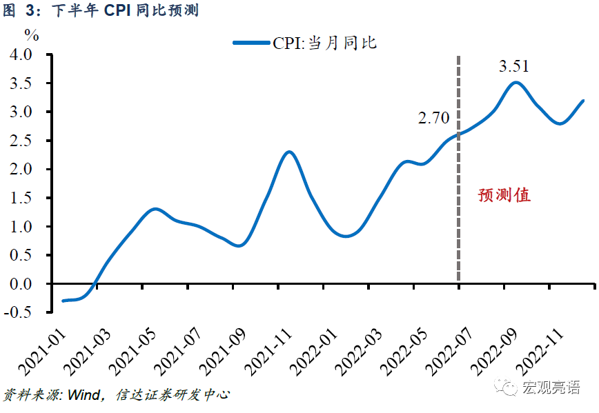三是央行预计今年物价涨幅仍将运行在合理区间,有望实现全年 CPI平均涨幅在 3%左右的预期目标。根据我们的最新测算, CPI有可能在 9月份首次破 3%并创下全年高点,读数接近 3.5%,下半年中枢约为 2.9%。
