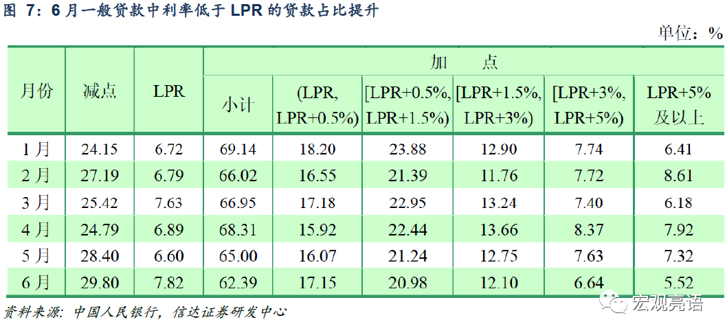 第六,6月利率低于LPR的贷款占比提升,关注可能出现的LPR下调。