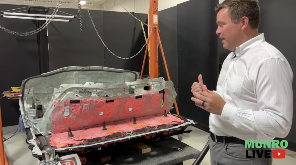 以特斯拉最新的4680电池包来说。此前,Sandy Munro团队拆了一套特斯拉4680电池包之后发现,这种结构化电池包内部,用的都是聚氨酯材料进行填充。当需要对一个单独的4680电芯进行维修时,都需要先清理掉这些聚氨酯材料。