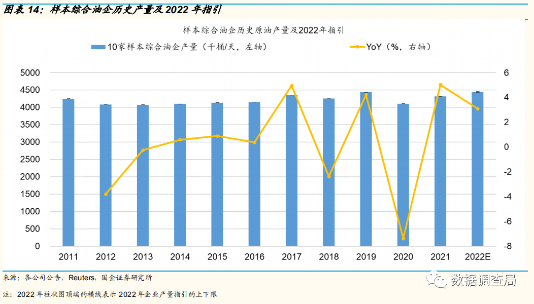 在资本开支意愿相较于往期较弱情景下,由于当前油气企业主要集中于现有资产的开发,伴随油田开发年限的增加,不论传统油田或是页岩油油气资产均出现了不同程度的资源品位下滑,从而导致虽然资本开支相较于2021年有较为显著增长,但整体产量增长有限,假使资本开支不能大幅的超过资源品位下滑幅度,原油边际产量增量或持续低于预期。