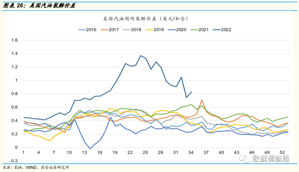 以成品油为例,近年来海外炼厂产量淘汰400万桶/日,在出行需求因为疫情压制没有恢复的时候,成品油裂解价差持续维持低位,但是2022年2季度随着欧美完全解除疫情管控以及季节性出行需求回升,供求缺口马上体现,成品油裂解价差迅速创下历史新高。