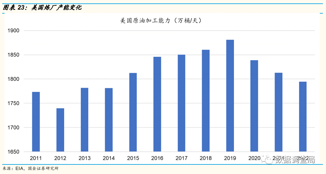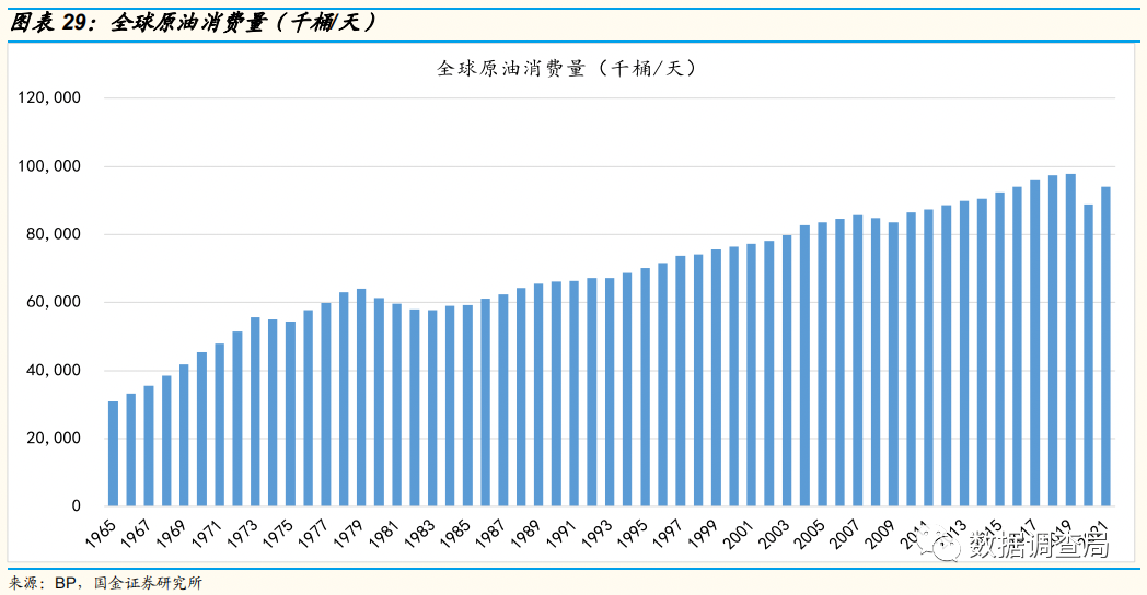我们复盘了自1965年以来全球原油消费量,在近57年需求量中仅有10年出现了需求下行,且除去新冠疫情带来的终端需求大幅下滑以外,需求衰退大约平均在负1.7%左右,整体需求衰退较为有限,且大多衰退持续时间较短,从中长期而言,全球原油需求持续维持正增长趋势,平均增速维持在2%左右。