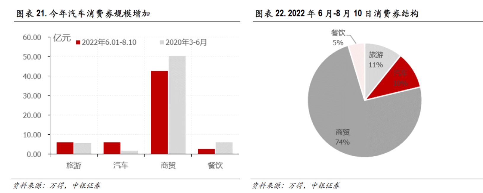 中银证券表示,汽车类消费在我国社零中占比相对较高(限额以上汽车零售在社零中占比达10%),且产业链的拉动效果较长,将是后续政策拉动的重要抓手;同时,当前我国对新能源汽车的扶持政策较多,当前汽车类消费肩负“产业升级”、“消费支撑”的双重责任,后续汽车消费刺激政策仍将有较高的确定性。
