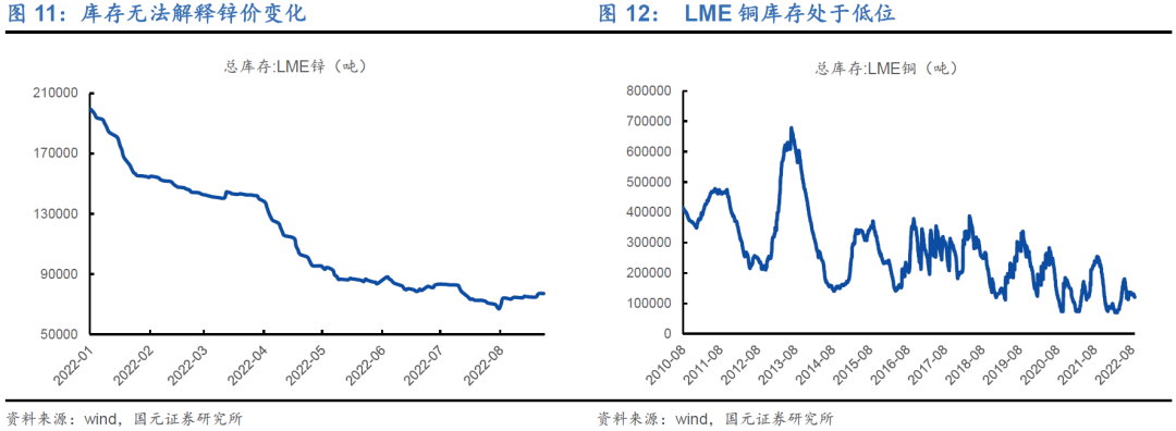 1)锌冶炼耗电量高,受能源价格高企和国内电力紧张的影响,锌的海外、国内供给双收缩:欧洲锌冶炼厂减产停产增多,四川工厂限电也使得锌冶炼厂开工率下降。