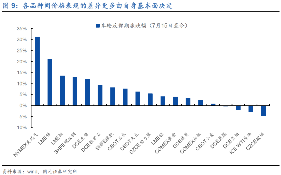4、本轮反弹中各品种间的涨幅差异,更多是由各品种自身的基本面决定: