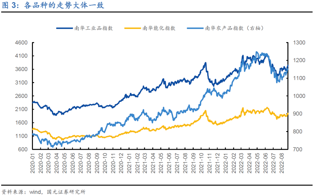 2)虽然短期因能源价格高企、高温限电限产等因素而影响了部分商品的供给,但是后续随着高温天气的退去,供给端的冲击有望弱化;虽然不排除可能还会出现一些供给扰动,但是估计都是偏短期和小幅度的,商品的核心定价逻辑还是要看需求,而需求要看宏观经济——这也是各品种长期走势大同小异的本质原因;