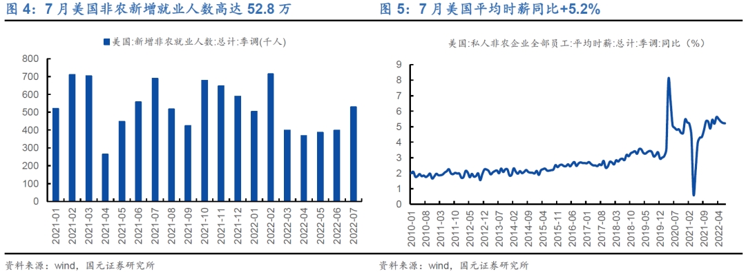 1)本轮反弹我们认为是前期“全球货币紧缩、市场担心经济下行”的利空充分释放后的预期扭转:作为美国经济核心指标的就业和消费表现持续超预期,7月美国非农新增就业人数高达52.8万,比市场预期高出一倍多;7月时薪同比+5.2%;私人消费表现仍强。美国经济距离衰退还有距离,前期市场过度恐慌的情绪得以修正。