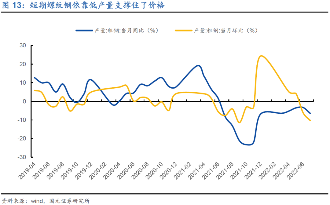 3)螺纹的终端需求仍然较差,但是短期依靠低产量支撑住了价格,7月粗钢产量环比下降10.3%,同比下降6.4%。