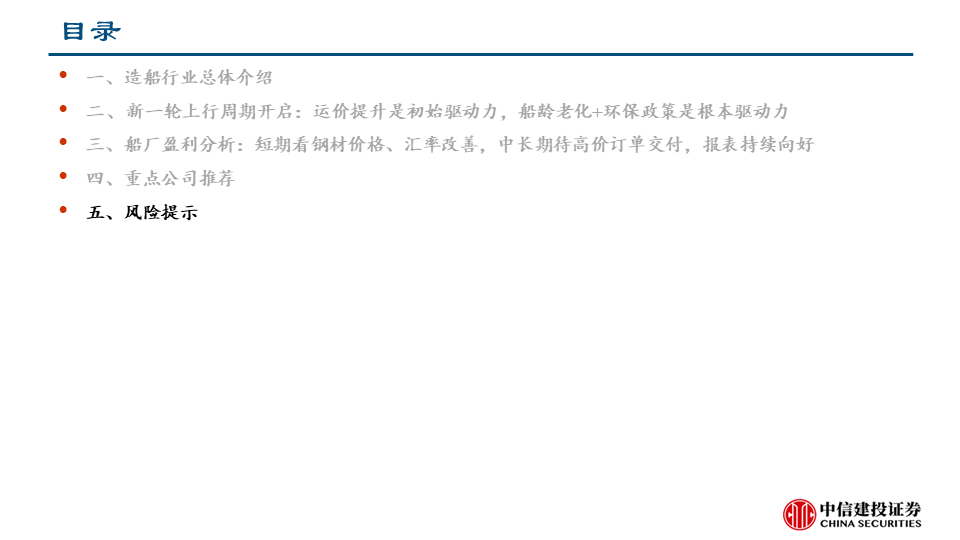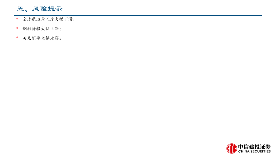 风险提示:全球航运景气度大幅下滑;钢材价格大幅上涨;美元汇率大幅走弱。
