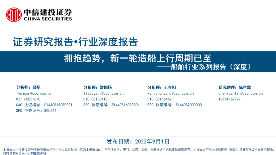 本文作者:中信建投吕娟、黎韬扬、王春阳,来源:中信建投证券研究,原文标题:《中信建投 | 拥抱趋势,新一轮造船上行周期已至——船舶行业系列深度》