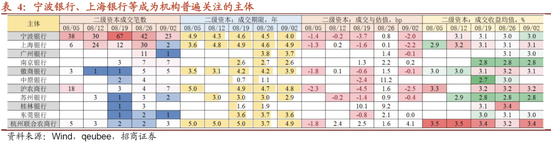 宁波银行、上海银行等二级资本债成交活跃之外,南京银行和徽商银行存量券同样受青睐。并且从期限上看,不少是新券,成交期限多在4.9年(行权前剩余期)附近。