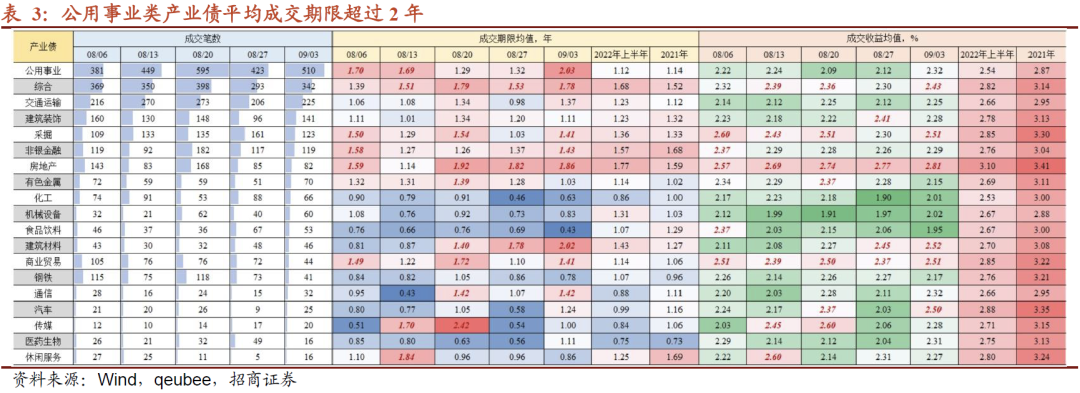 其中,公用事业、交运、煤炭及建材等成交期限明显靠前,且超过今年上半年及去年水平。显而易见的问题是,要拿到2.5%以上的资产不易,因而对部分投资者而言,适当降低持仓收益,是为了达到防风险目的。