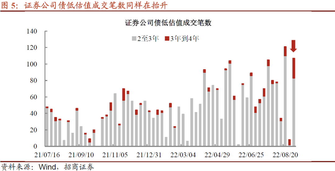 另一方面,证券公司债展现同样特点,其2至4年总成交笔数缔造年内次高点;3年至4年成交表现突出,多数集中在资产规模较大的几家券商发行人。