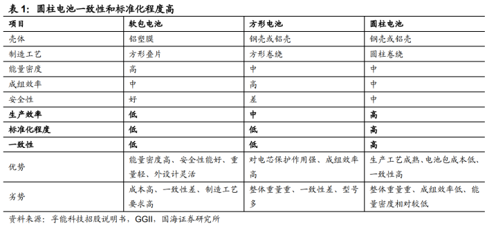 相比于方形电池和软包电池,圆柱电池在一致性、结构件强度、散热性能方面更优,且大圆柱电池特有的无极耳设计可以减少大圆柱电池在充电过程中的产生的热效应,因此大圆柱电池对热稳定性较差的高镍正极和体积膨胀率较高的硅基负极包容性较好。