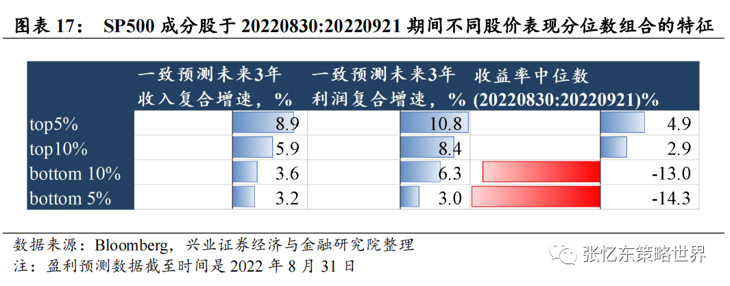 事实上,8月底以来,美股股指下跌期间,质优成长占优,后续这一特征有望延续。0830-0921期间,SP500成分股内表现前5%组合(中位数来看实现正收益4.9%)的未来3年预计收入复合增速中位数为8.9%(后5%组合为3.2%,后10%为3.6%),未来3年净利润预计复合增速中位数为10.8%(后5%组合为3.0%,后10%为6.3%)。