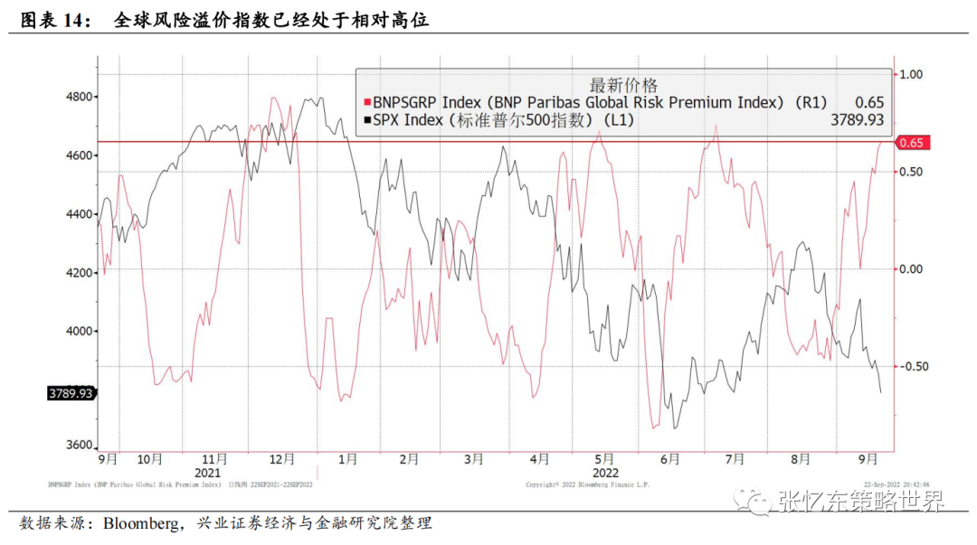 最后,值得注意的是,展望Q4,长端利率也难下行,至少难下行到大幅提振美国权益市场的程度。我们0830提出,长端利率、权益市场热度也是紧缩金融条件的一部分,如果博弈联储转向带来长端利率下行和美股反弹,也将招致联储超预期的鹰派应对(事实上,这一分析逻辑得到0907“美联储口舌”华尔街日报的印证)。美股市场风险溢价需要维持在一定程度的高位,下来了也会上去。