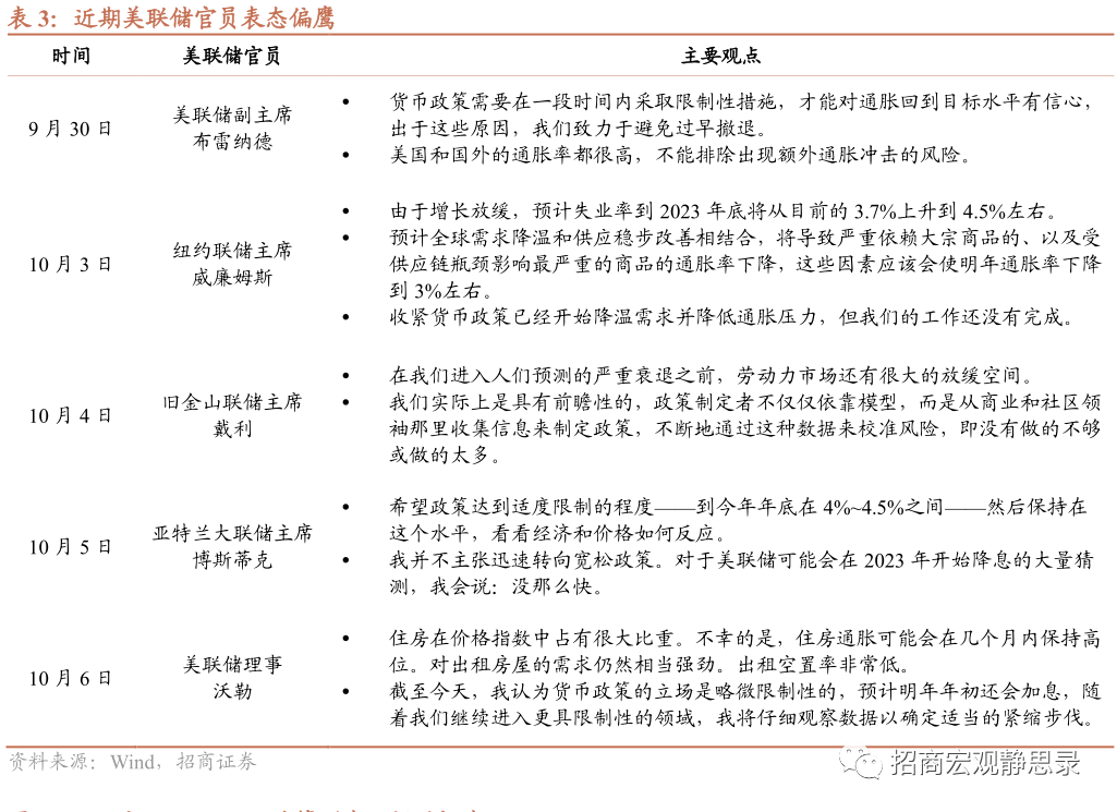(1)美联储加息预期重新升温:近期多位官员发声,态度总体偏鹰。叠加OPEC+宣布减产导致国际油价反弹,9月30日以来CME加息预期重新升温。