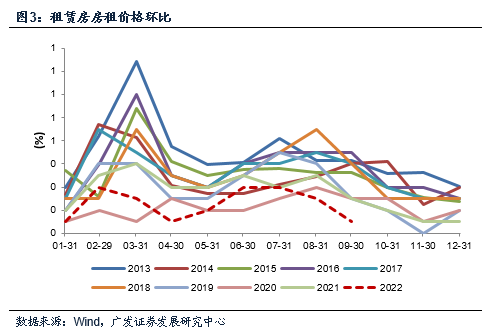 9月租赁房房租环比为-0.2%,低于8月的零增长,亦低于正常的季节性。