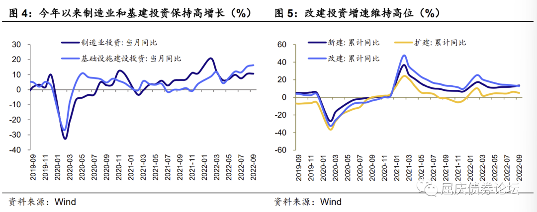 今年以来制造业投资维持较高增长,8-9月同比增速分别达到10.6%、10.7%,政策对新能源转型等技术创新支持下,改建和技术改造对制造业投资贡献提高,此外基建投资对制造业也有带动作用,制造业投资有望保持韧性,对融资需求有支撑。