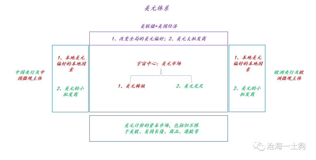 最后,我们可以用美元把全球经济串联在一块,如下图所示,