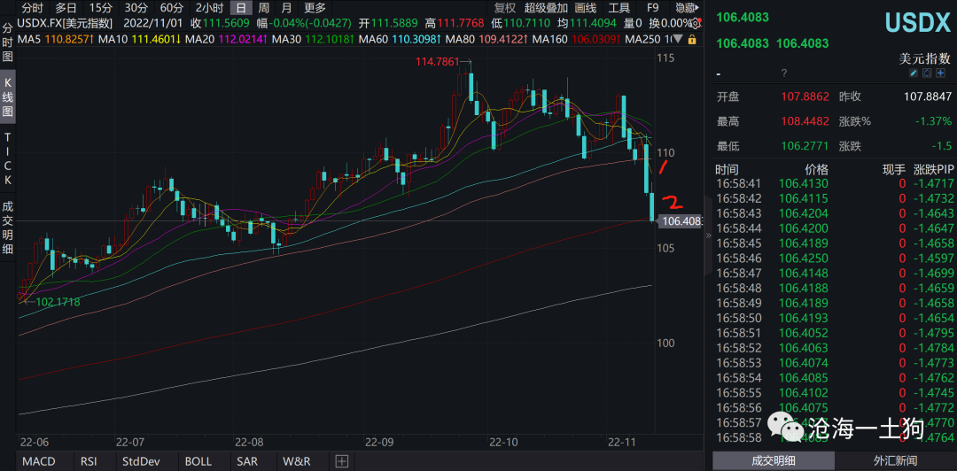 站在美元指数的角度,这是两个大利空:第一件事影响美联储货币政策,第二件事降低了中国人的美元需求,中国经济体量又很大。