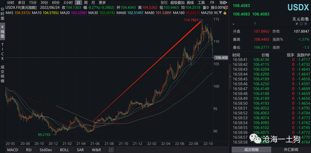 在非美经济这个维度,除了中国经济不好之外,欧洲也被俄乌战争和能源危机搞得死去活来。于是,中国人想拿美元,欧洲人也想拿,大家都想拿,美元指数上天。