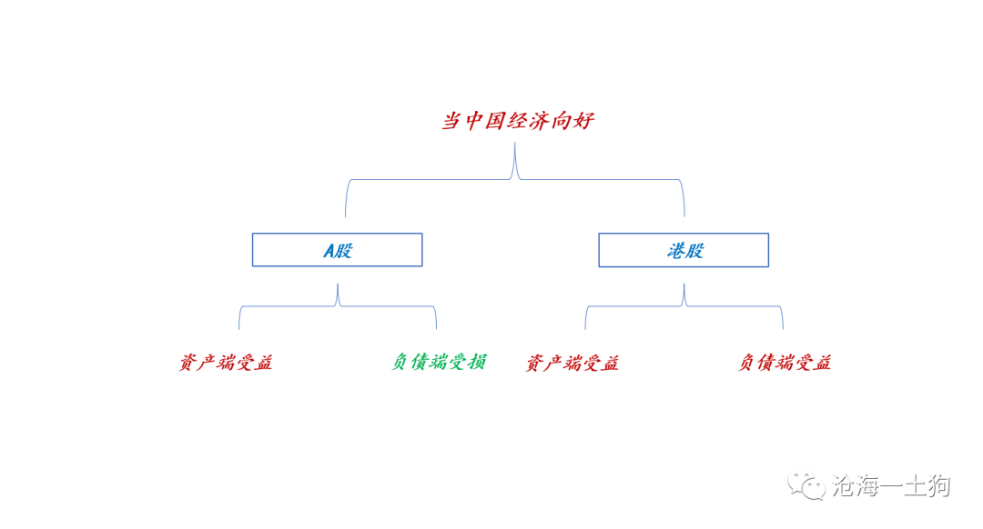 但是,港股看的是美元流动性,中国经济向好,美元流动性会边际变好,因此,对港股而言,其资产端向好,负债端也向好。