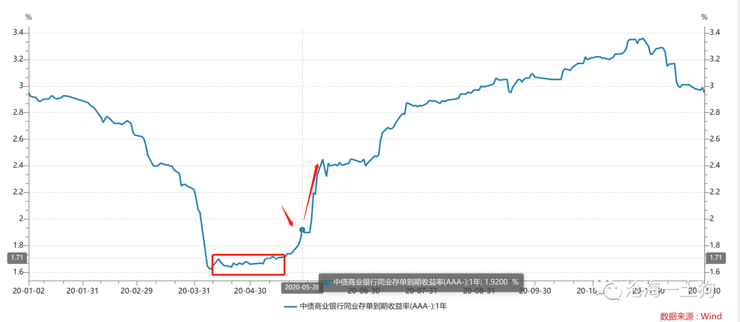 孤证不举,我们需要借鉴一下历史经验。最近一次存单利率大幅上行发生在2020年,具体走势如下图所示,