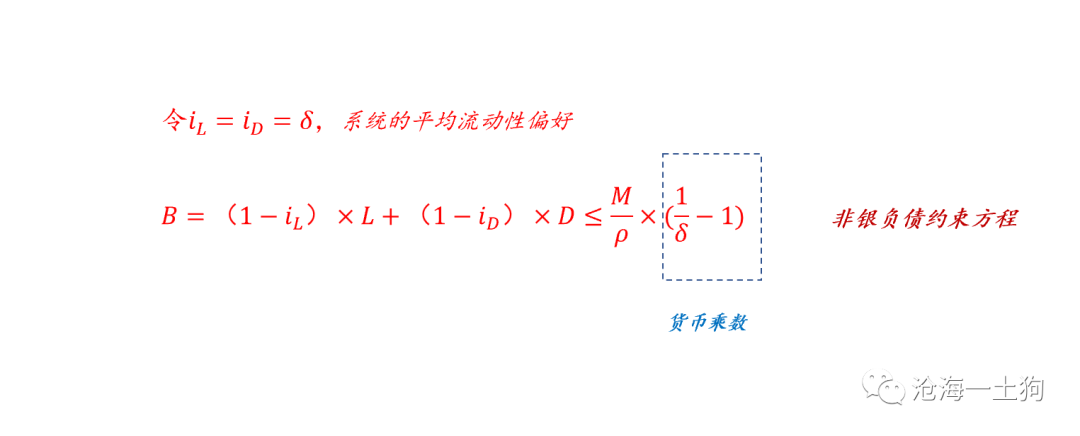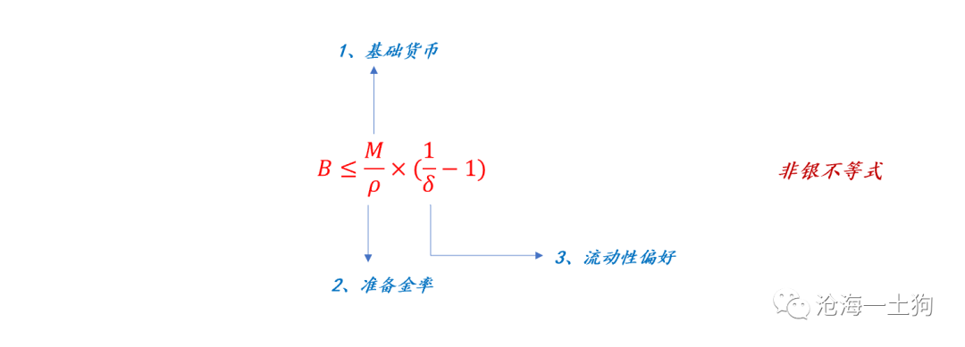 这个不等式告诉我们非银的负债受到3个制约条件:1、基础货币的量;2、准备金率;3、流动性偏好(ps:另一面叫货币乘数)。