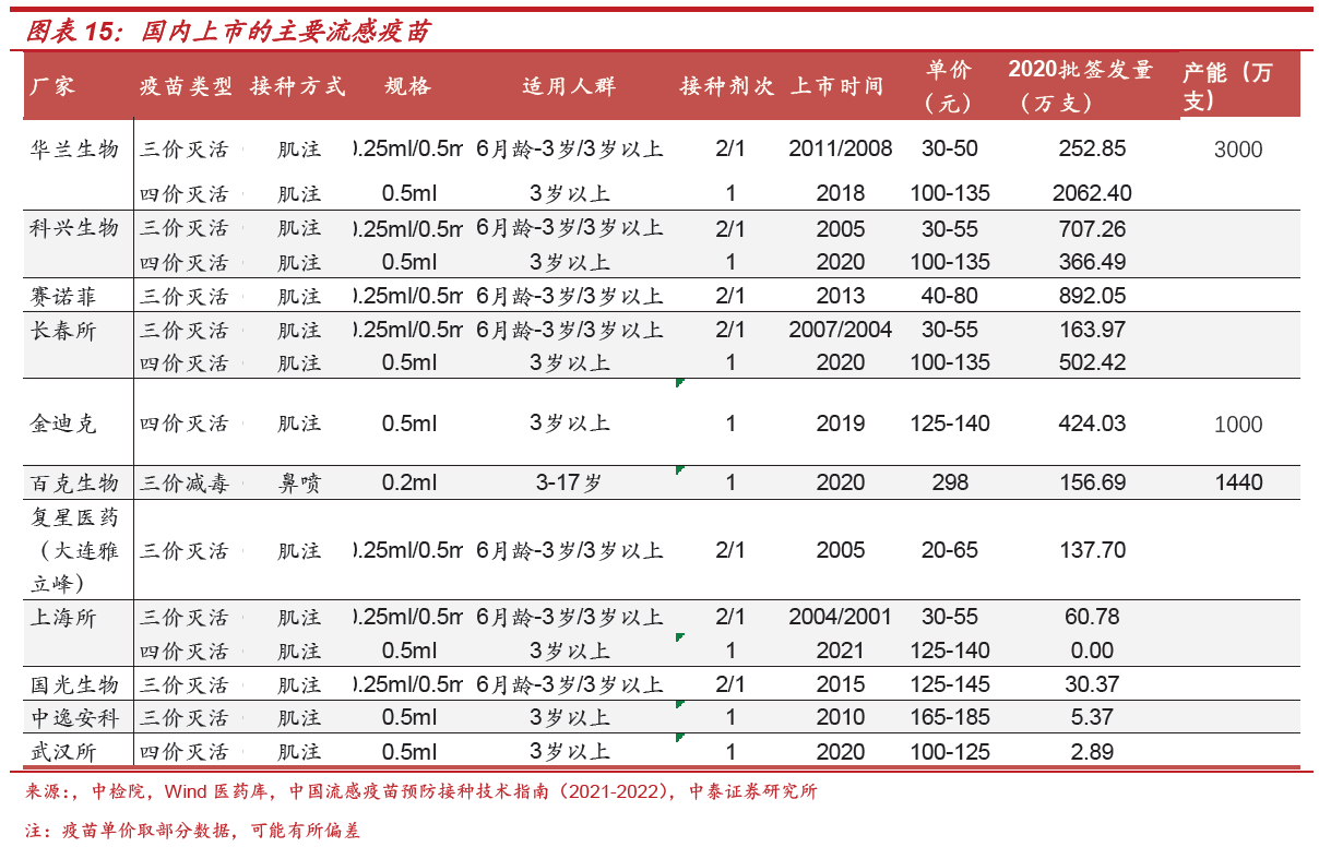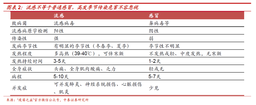 中泰证券也指出,接种疫苗是预防流感的最有效手段。由于流感病毒具有高度易变形和不确定性,因此流感疫苗中包含病毒必须定期进行更新,使得疫苗的免疫效果达到最佳,接种流感疫苗后产生免疫保护作用一般持续6-8个月,因此流感疫苗需要每年接种,可以显著降低罹患流感和发生严重并发症的风险。