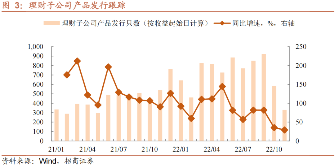第二,近期,理财子公司及相关产品还有不低的净买入量,但其又作为基金的委托人,行为上是否矛盾?理财信用债配置除了自持之外,的确会通过增配基金产品或者委外的形式,交由基金管理,目的是实现收益增强。当下理财净买入行为,是否可以推断赎回基金产品力度偏弱?并不是,从我们跟踪的理财子公司发行来看,10月以来,仍有不少新增产品,理财买债或许来自新产品建仓。那么如何有效观察理财是否被下跌行情波及?我们从两个维度来对比3月与本轮理财配置行为。