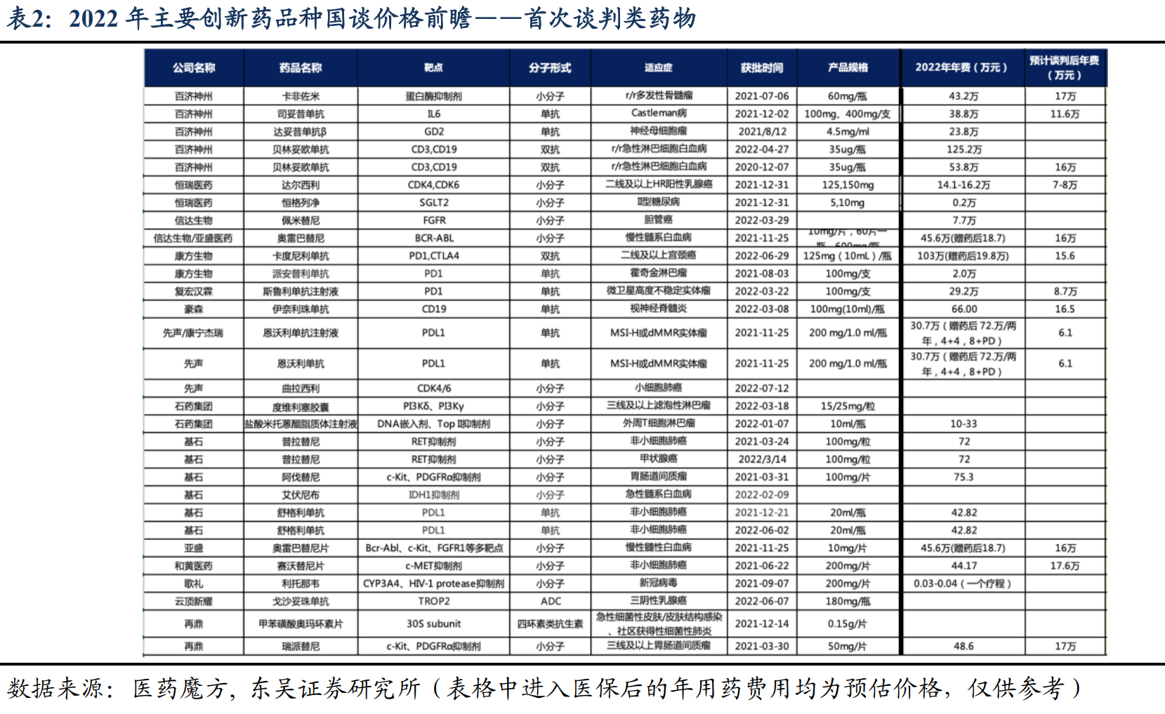 而随着新一轮医保谈判在即,近日包括东吴、光大、民生等在内的多家券商都纷纷谈到了创新药的机会。