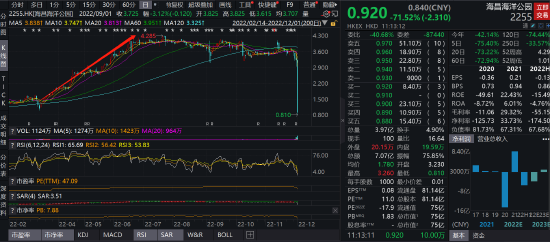 12月1日消息,港股再有大白马闪崩,海昌海洋公园一日暴跌70%,近200亿市值被蒸发,最新市值不足百亿港元。随着海洋海昌公园暴跌,大幅抄底资金买入,如果从底部买入,目前涨幅已经翻倍。