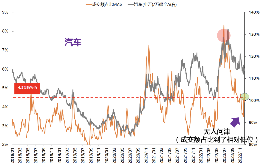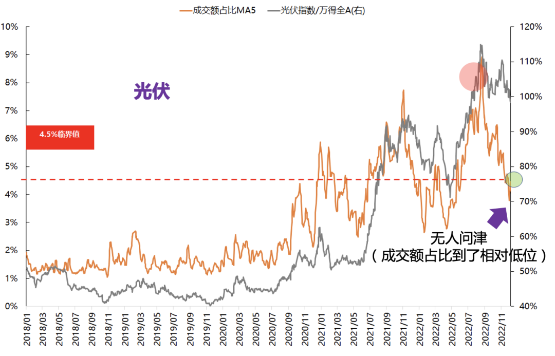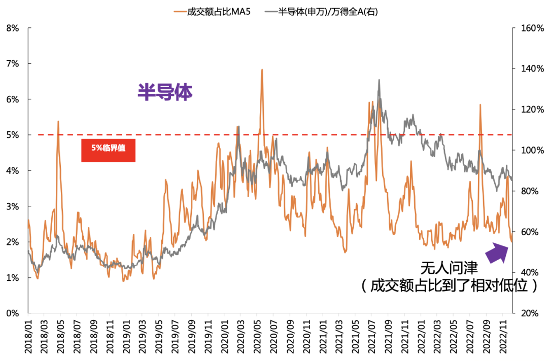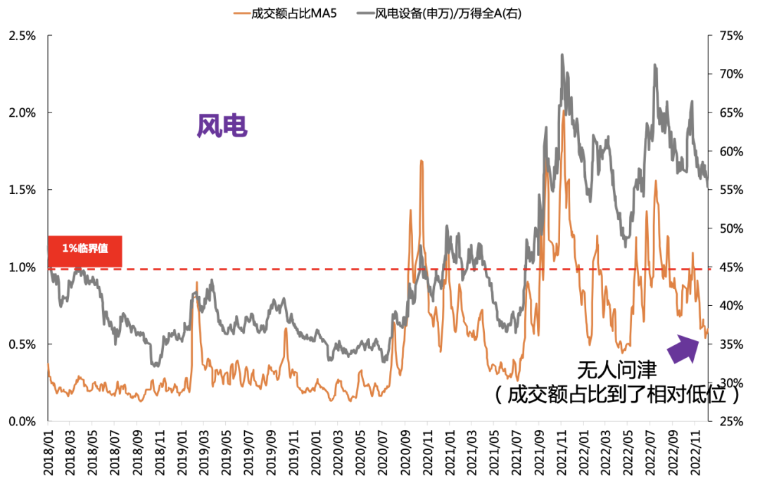 这里需要说明的是,成交额占比低,不一定是买入的理由,还要考虑景气度趋势。但在无人问津的位置上,至少可以开始重点关注了,一旦有一些边际变化,在比较低的预期的情况下,股价可能就会开始反映。