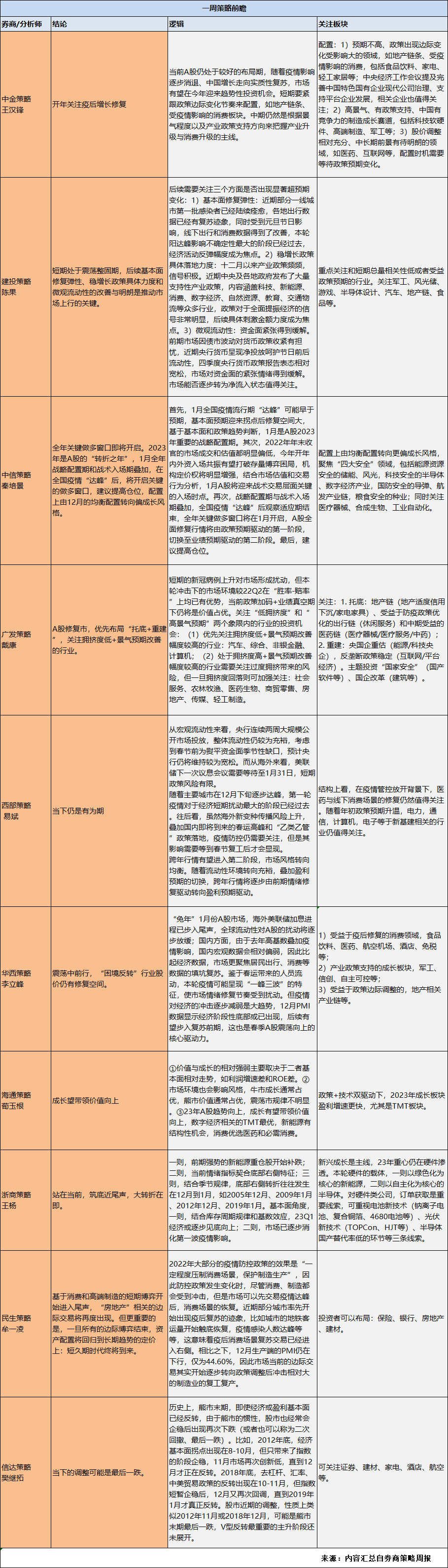 本周各家券商策略分析师更多偏向乐观。有多家分析师指出,全年关键的做多窗口或出现在1月份。