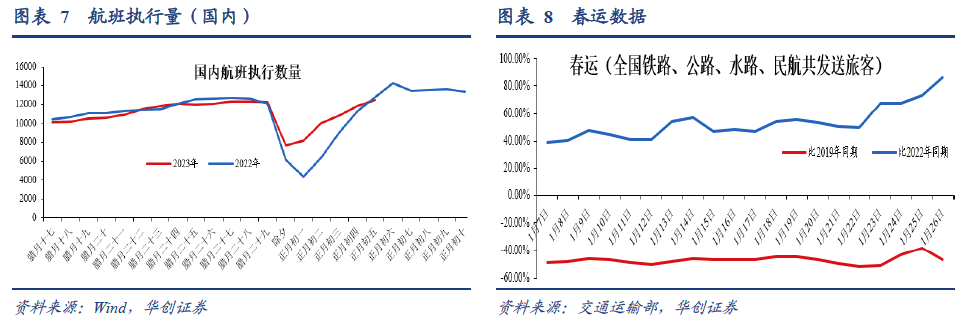 春运方面,根据交通运输部数据,春运前20天(1月7日至1月26日),共发送旅客(铁路、公路、水路、民航)7.4亿人次(注:此前预期为40天20.95亿人次),同比增长52%,但相比2019年,下降46.8%。